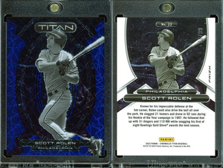 2023 Topps Rip - Mini Autographs #TRA-SR, SN50. Topps Rip was released to the public on November 22nd. The cost: $99.99 for a box containing just four cards. Each of those four cards were serial numbered to 99 or less, which leads to these cards possibly never seeing the light of day! These mini autographed cards were inserted 1:4. This is the fourth year of Topps Rip, but just the second year that Rolen was included in the checklist. It's an interesting concept because in order to obtain this specific card, you would first have to rip open a standard sized baseball card. Overall, I really like the design of these. We've got Rolen pictured here in his Cardinals jersey (which is always a plus in my book!) And the autograph is once again, on-card. Hopefully the parallels of this card surface rather soon so I can get those into the collection as well!